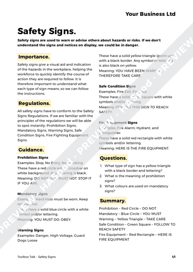 1 minute safety talks are not created to compose most of your safety treatments, procedures or initiatives.